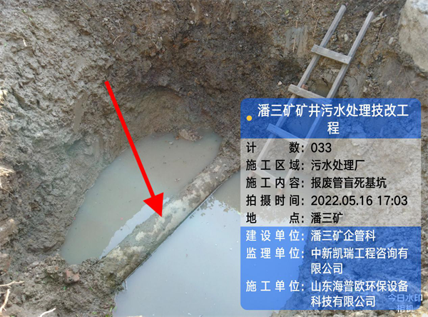 報廢管盲板:人機配合挖基坑(完成)安裝報廢管盲板(未施工,考慮制定不影響生產運行方案后施工) |